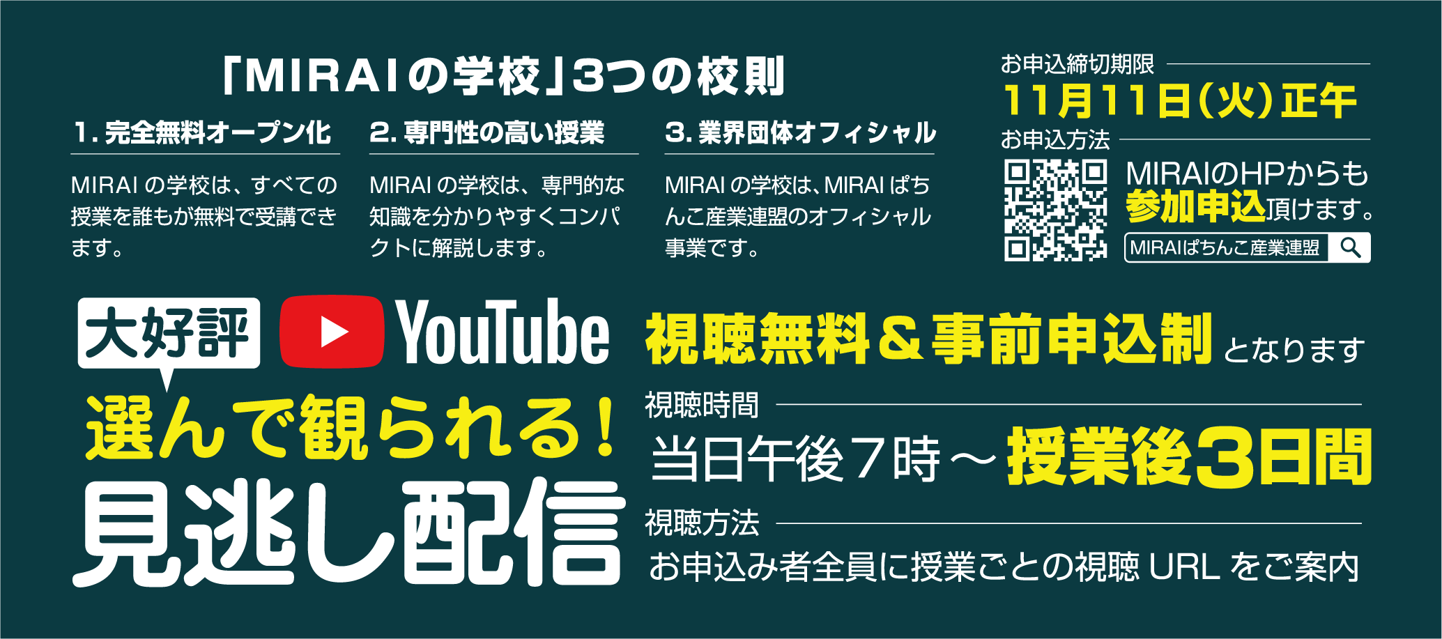 一般社団法人MIRAIぱちんこ産業連盟事務局 担当:宮本03-5688-3511info@mirai-pachinko.jp